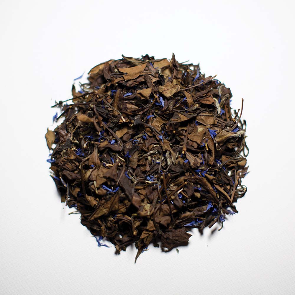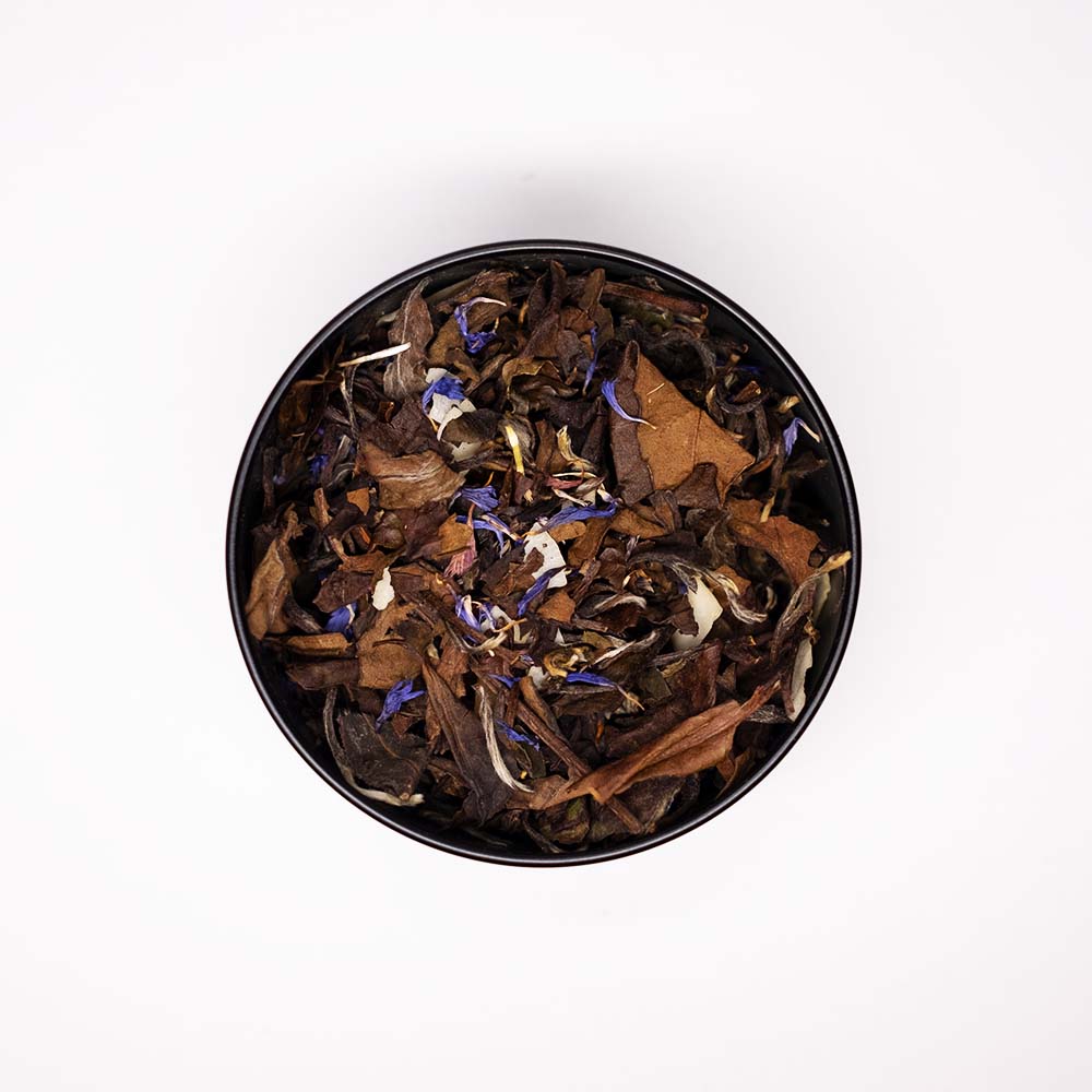 Ingredients: Shou Mei White Tea, Coconut Shreds, All Natural Flavor, Cornflower Petals.